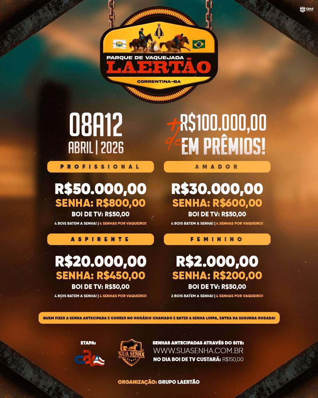 - 4 senhas por vaqueiro
