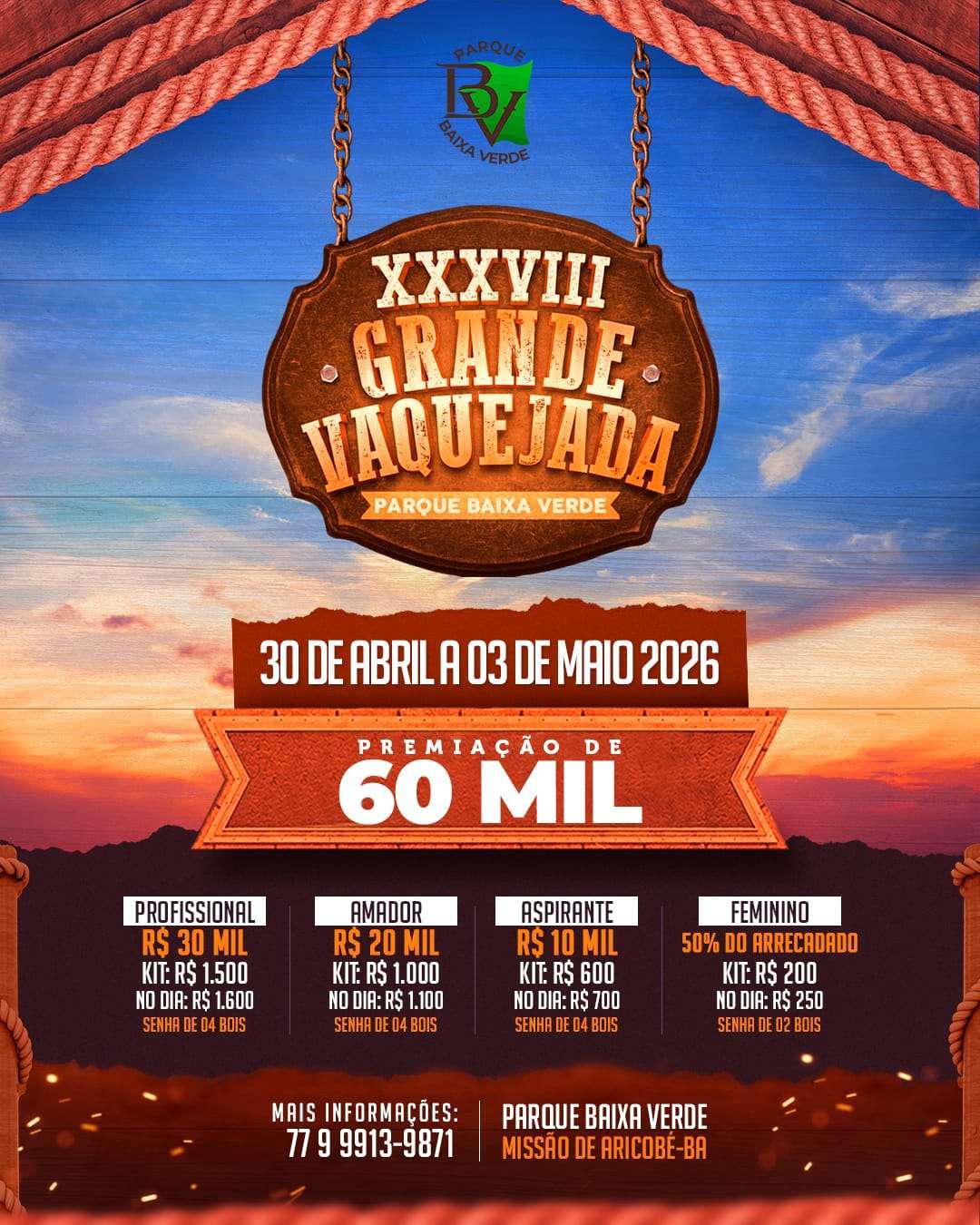 - 07h - Início da vaquejada;